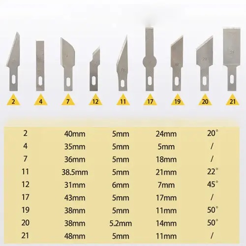 номера лезвий: 2, 4, 7, 11 (5 шт), 12, 17, 19, 20, 21;