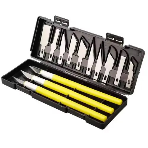 Нож прецизионный 3шт с 13 сменными лезвиями для резки дерева кожи, пластик, кейс