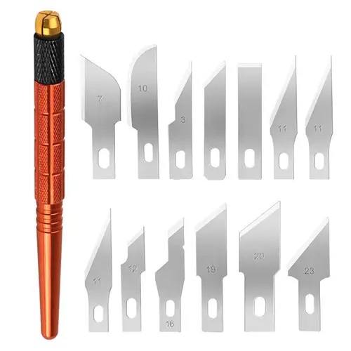Нож прецизионный с 13 сменными лезвиями для резки дерева кожи пленки бумаги