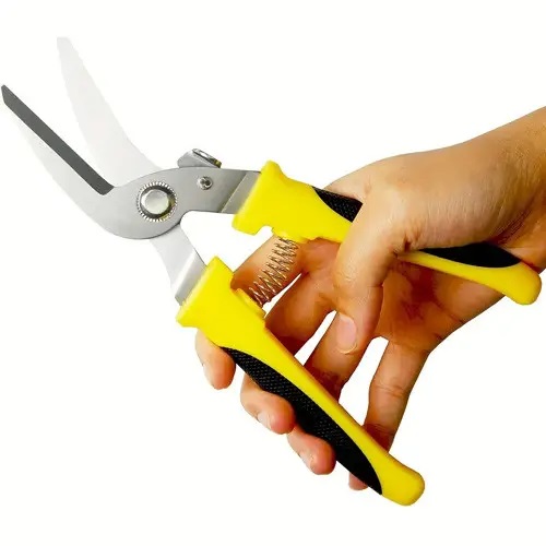 Шарнирный механизм ножниц оснащен боковым рычагом блокировки, которым удобно управлять одной рукой. А благодаря противоскользящему покрытию рукояток предотвращается скольжение, тем самым надежно фиксируются в руке.