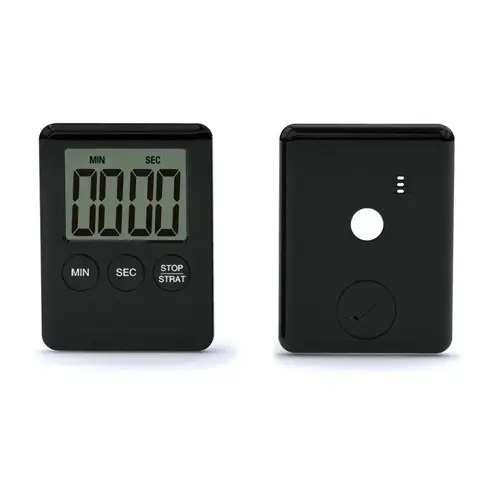 Таймер дозволяє задати відлік часу до 99 хвилин 59 секунд. Налаштування часу до початку звукового сигналу здійснюється встановленням кількості хвилин за допомогою кнопки MIN, кількості секунд кнопкою SEC, потім натиснути кнопку STOP/START для початку відліку. Натискання кнопки STOP/START зупиняє процес відліку, наступне натискання продовжує відлік. Ці проміжні зупинки доступні як в режимі таймера, так і в режимі секундоміра. Для зупинки звукового сигналу необхідно натиснути на кнопку STOP/START. Після зупинки звукового сигналу на дисплеї відновиться попереднє завдання і таймер буде чекати команди початку відліку. Для створення нового інтервалу необхідно обнулити завдання, для цього одночасно натискаються кнопки MIN і SEC.