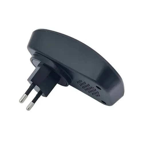 Дзвінок складається з двох частин – кнопки-передавача, яка встановлюється за допомогою двостороннього скотчу (в комплекті) і динаміка-приймача з євровилкою, що працює від електромережі.