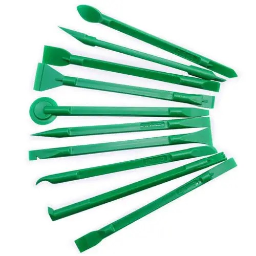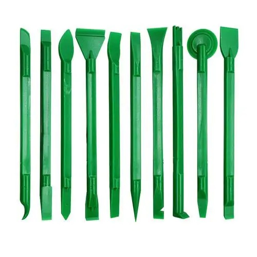 Набір з десяти двосторонніх лопаток для розбирання телефонів, планшетів і різної електроніки. Дозволяють відкривати кришки і розкривати корпуси різної електроніки, легко і без шкоди для останніх. Двадцять різних форм лопаток на кінцях 10-ти знімачів дозволяють використовувати їх для різних маніпуляцій не тільки при розбиранні і роботі з гаджетами, але і при інших ремонтних і відновлювальних роботах.