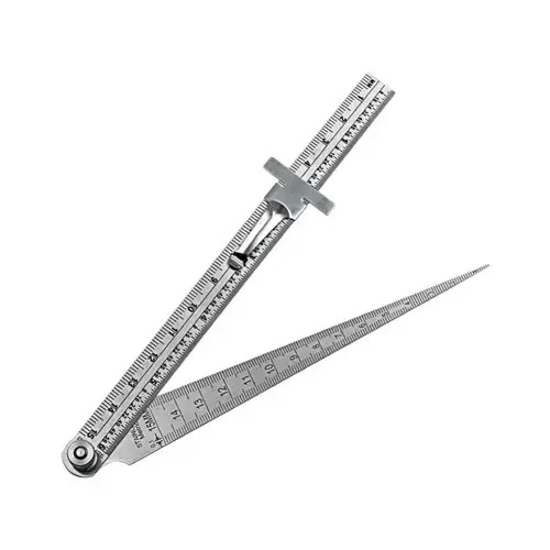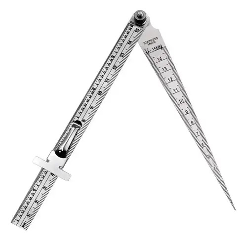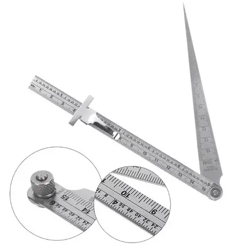 | Додаткові характеристики | шкала лінійки: 0 – 15 см, 0 – 6 дюймів; крок вимірів глибини: 1 мм; шкала конуса: 0 – 15 мм; крок вимірів діаметра отвору, ширини паза: 0.1 мм; вага: 20 г |