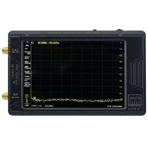 TinySA Ultra Plus ZS-407 — компактний комбінований прилад, що поєднує функції аналізатора спектру і генератора сигналів. Розроблений для швидкого і точного контролю радіочастотних діапазонів: від низькочастотних УКХ-сигналів до СВЧ-технологій, включаючи Wi-Fi, LTE і радіорелейні канали. Працює в розширеному діапазоні частот і дозволяє спостерігати та виявляти радіосигнали практично будь-якого радіопристрою. Прилад має великий резистивний сенсорний дисплей, а ємний акумулятор забезпечить тривалий час автономної роботи. Повністю оригінальна модель високої якості, на відміну від китайських підробок.